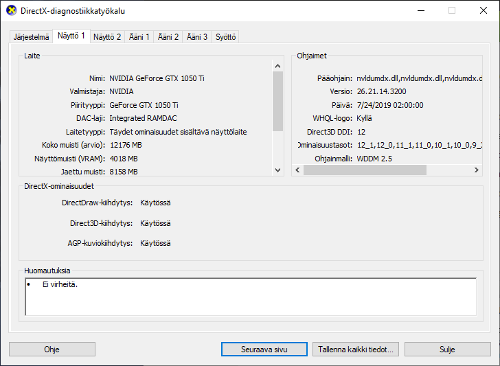 The graphics card model can be found under Display 1 and under the chip type, the GeForce GTX 1050 Ti.