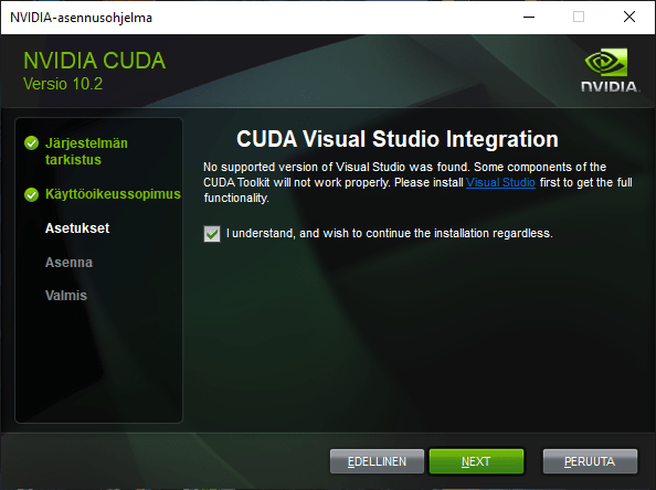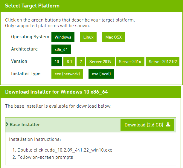 Note! Nvidia containers does not have support for Windows operating systems, because Nvidia does not have a Windows compatible containers source: https://github.com/NVIDIA/nvidia-docker/issues/429. In Windows you need to install programs manually to use GPU. Go to Manual Installation part.