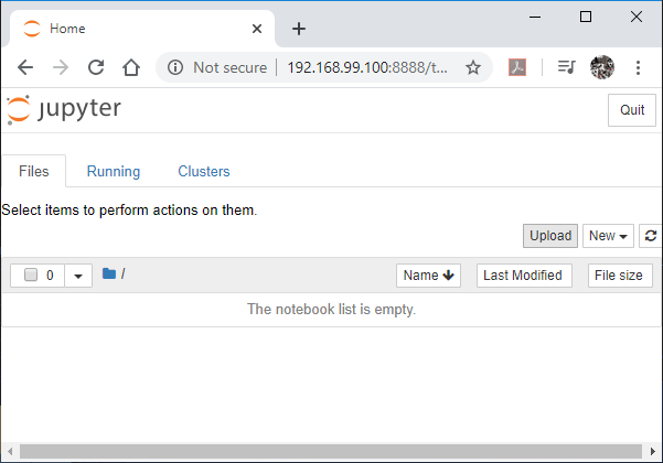 Jupyter opened to the address of the container, which works by default and even though the container setup warns “All authentication is disabled. the container does not even appear on the internal network because it creates a new subnet address that is behind the firewall on this machine.
