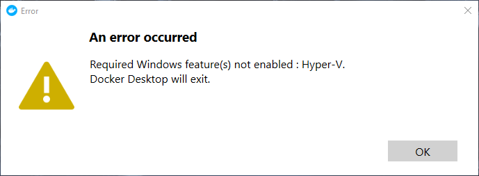 At reboot, Docker Desktop announces that Hyper-V is required for the docker desktop to work, but we do not access Docker through it.