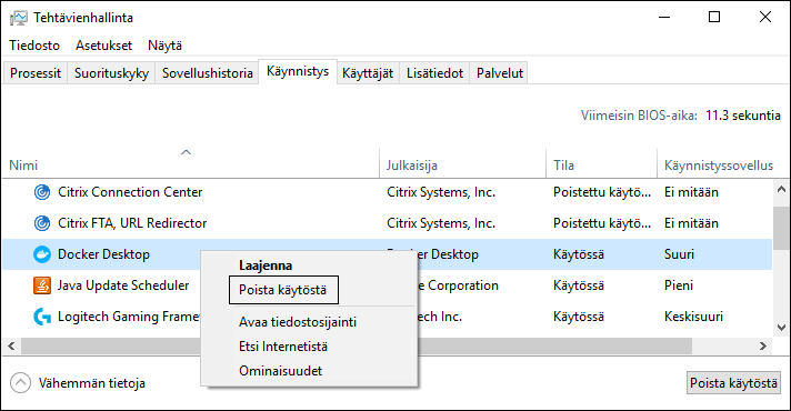 I removed Docker Desktop from starting up programs, now it doesn’t appears at startup.