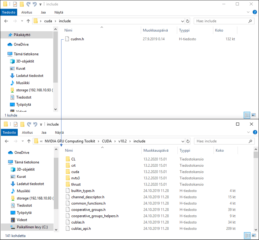 From folder \cuda\include file cudnn.h CUDAN to folder C:\Program Files\NVIDIA GPU Computing Toolkit\CUDA\v10.2\include.