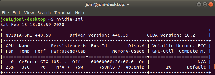 First, we check that the drivers are found on your local machine by command “nvidia.smi“.